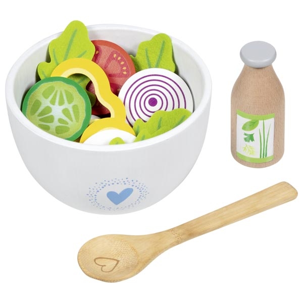 Goki puidust salatikauss koos toiduainetega